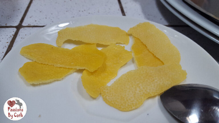 Si vous utilisez un couteau économe, il faut veiller à ce que l’action du couteau reste très superficielle pour ne pas prélever la partie blanchâtre de l’écorce car elle apporte de l’amertume alors que le zeste apporte le côté acidulé recherché.